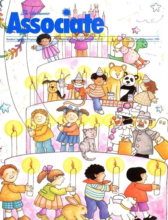 The image. Tomie was asked to create an illustration celebrating the 25th anniversary of the Smithsonian’s Resident Associate Program and celebrating RAP’s Young Associate and Family activities.